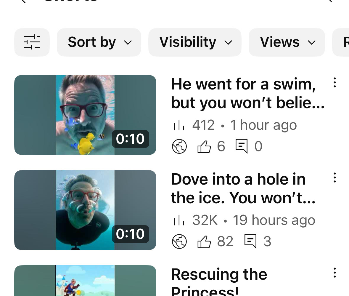 Meanwhile, Joel, collaborated with a YouTube consultant to restructure his content into short, story-driven clips. His video “Dove into a hole in the ice. You won’t believe…” reached 32K views in a single day, proving that strategy beats randomness every time.