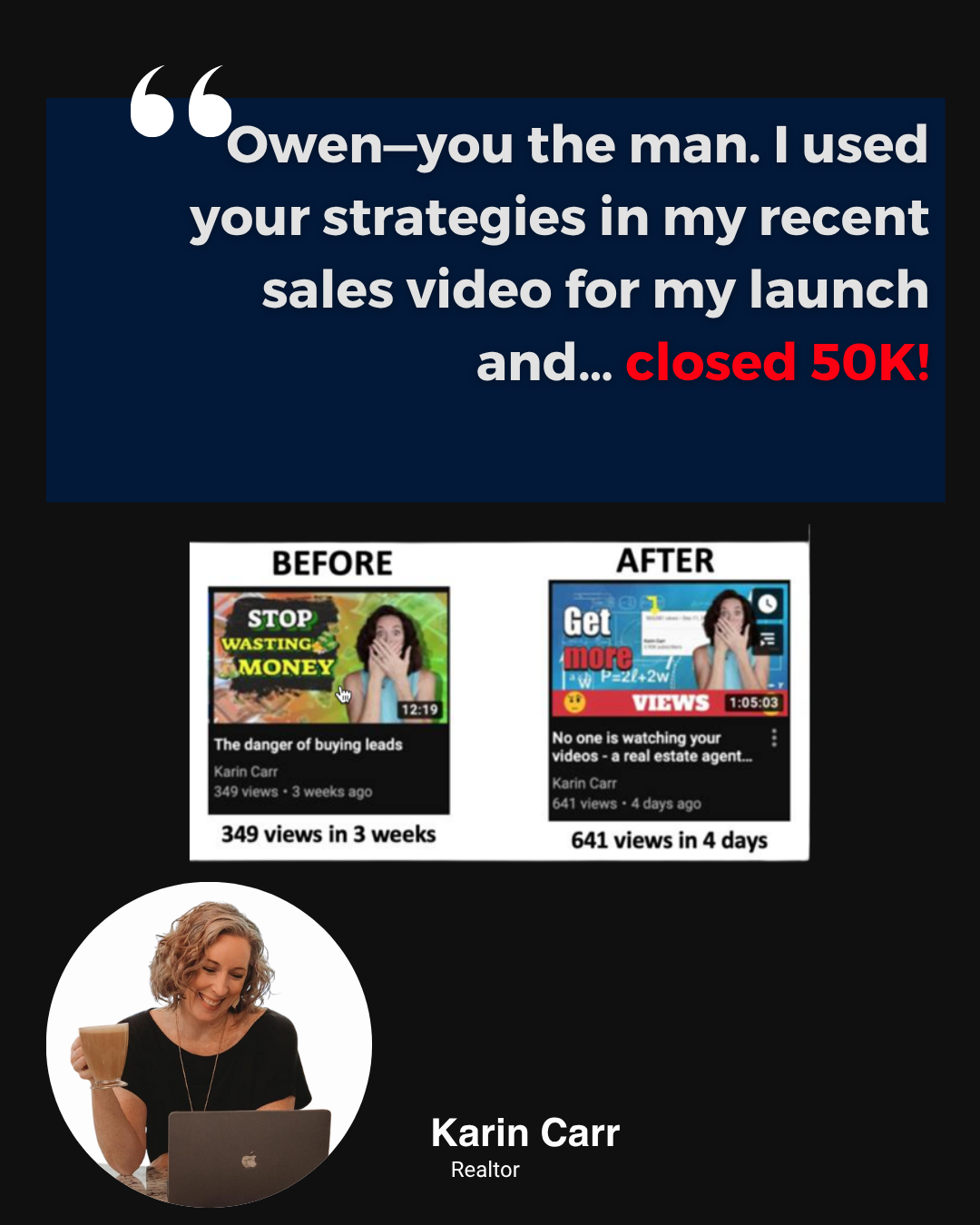 Personalized strategy sessions and mentorship to help you grow your channel, boost performance, and turn views into clients.