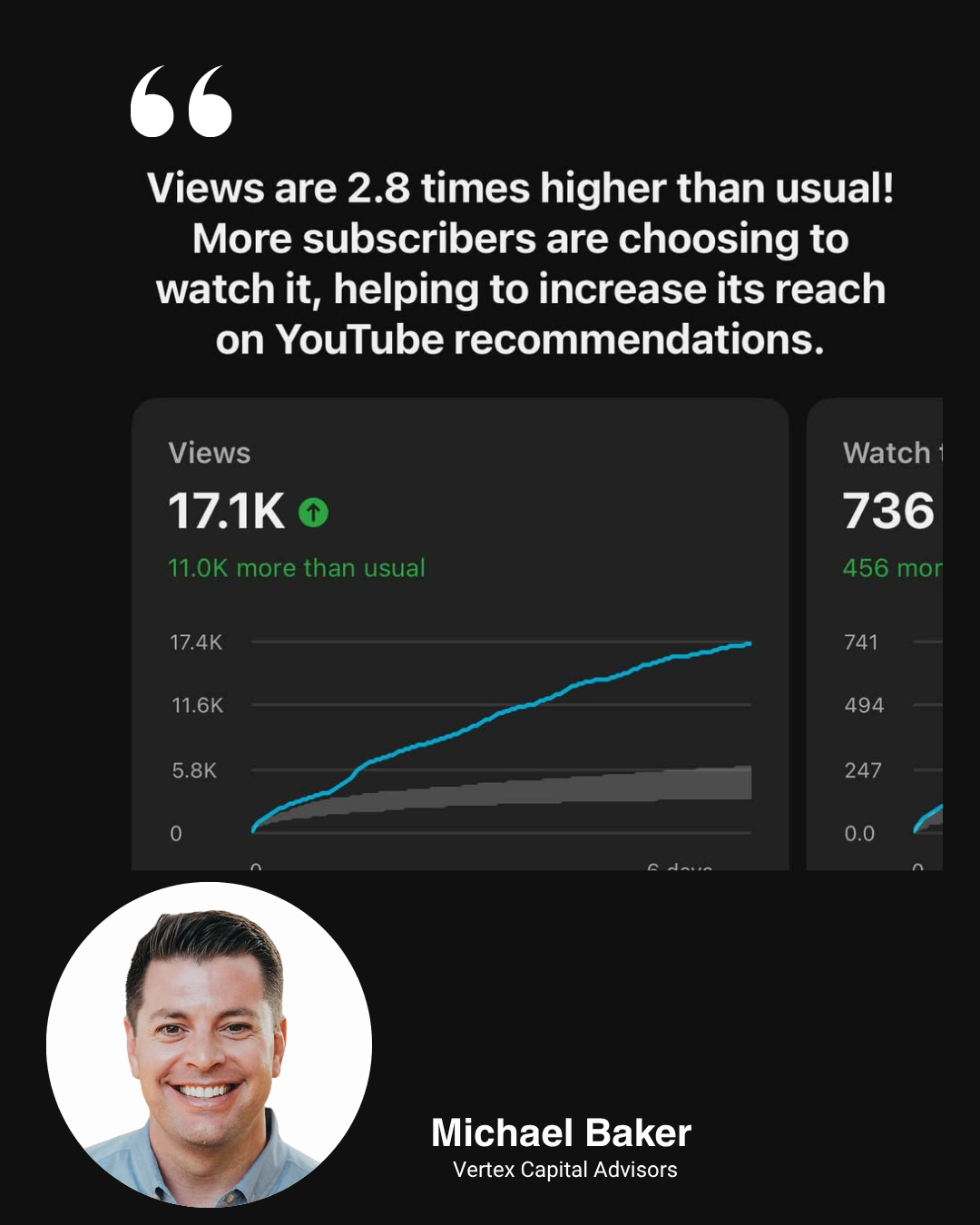 You’re busy building your business—we get it. That’s why we handle every aspect of your YouTube marketing strategy, video production, and channel growth so you can stay focused on scaling your impact, revenue, and authority.
