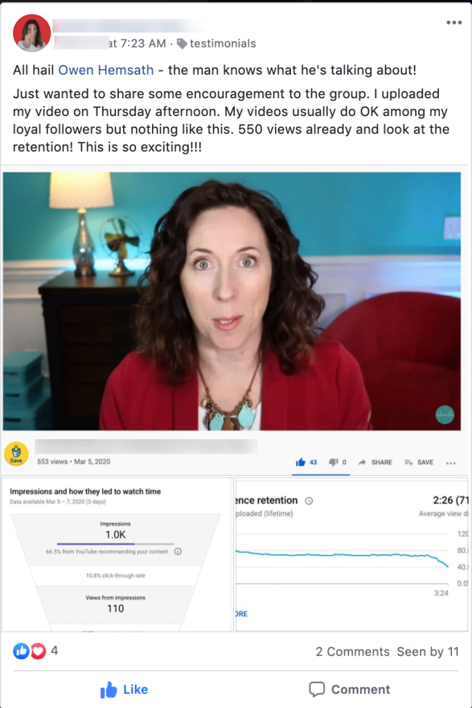Another business owner inside the YouTube Authority Intensive went from 349 views in 3 weeks to 641 views in 4 days, simply by applying Owen’s Silo Strategy and refining her delivery.